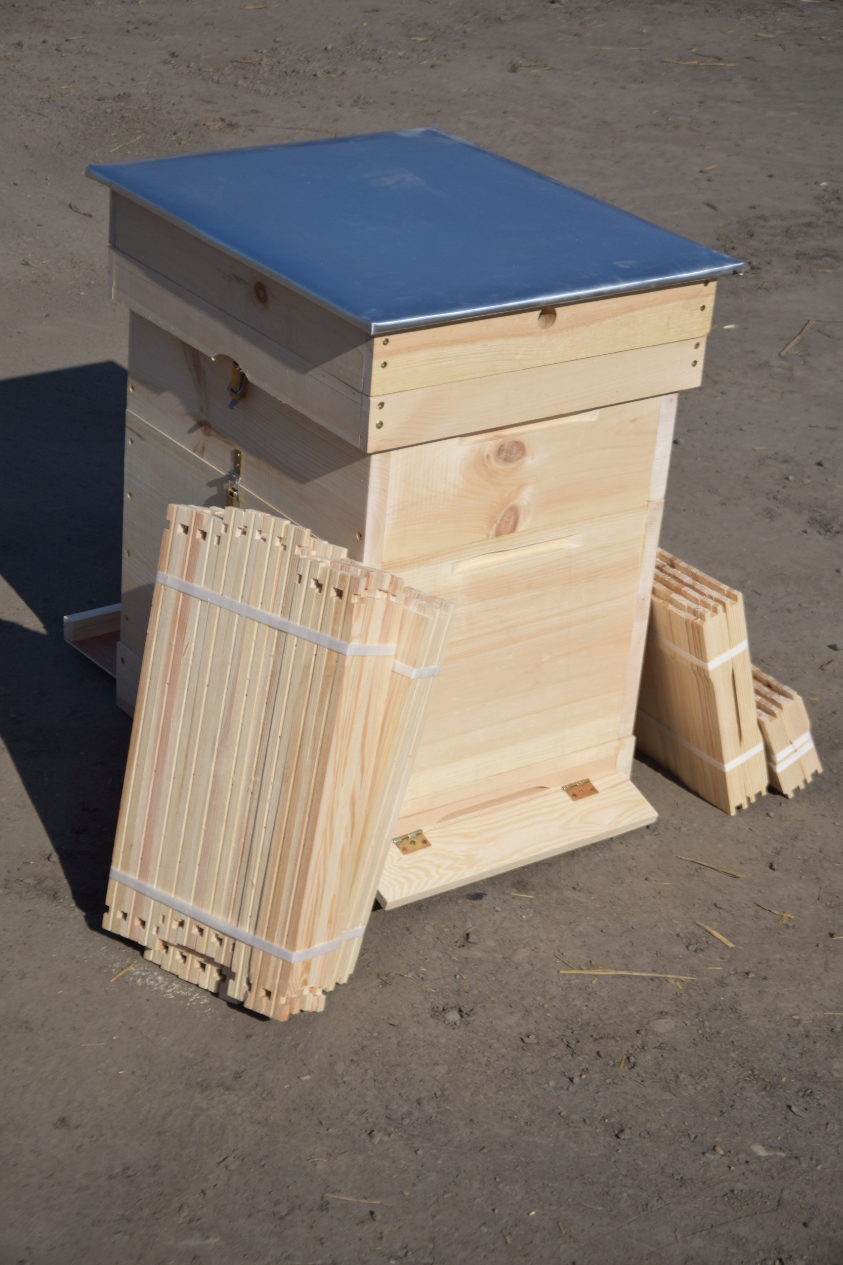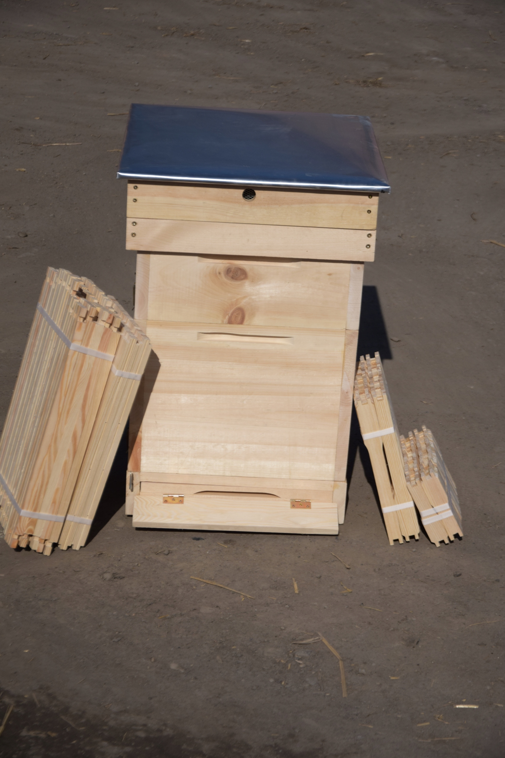 – Dennica wysoka higieniczna z wkładką do kontroli osypu warrozy. Dennica ma zamontowane lądowisko na zawiasach i jest zakrętka wiedeńska która umożliwia szybkie zamknięcie dennicy i transport pszczół.