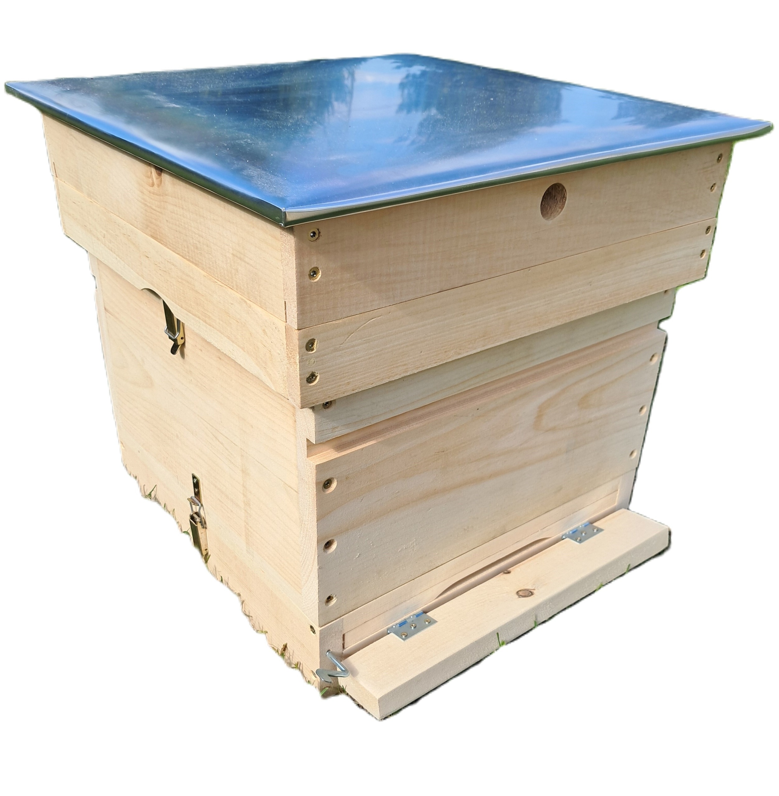 – Dennica wysoka higieniczna z wkładką do kontroli osypu warrozy.   Dennica ma zamontowane lądowisko na zawiasach i jest zakrętka wiedeńska która umożliwia szybkie zamknięcie dennicy i transport pszczół.
