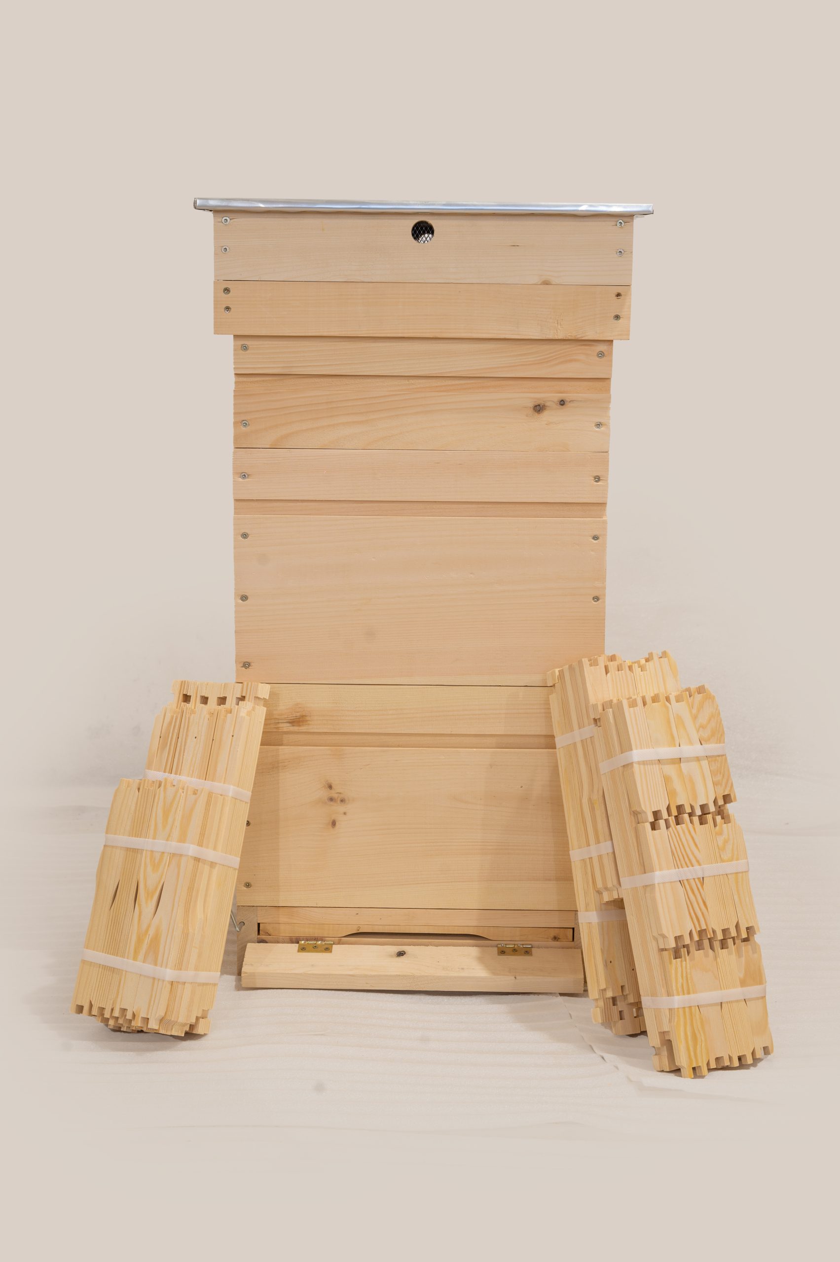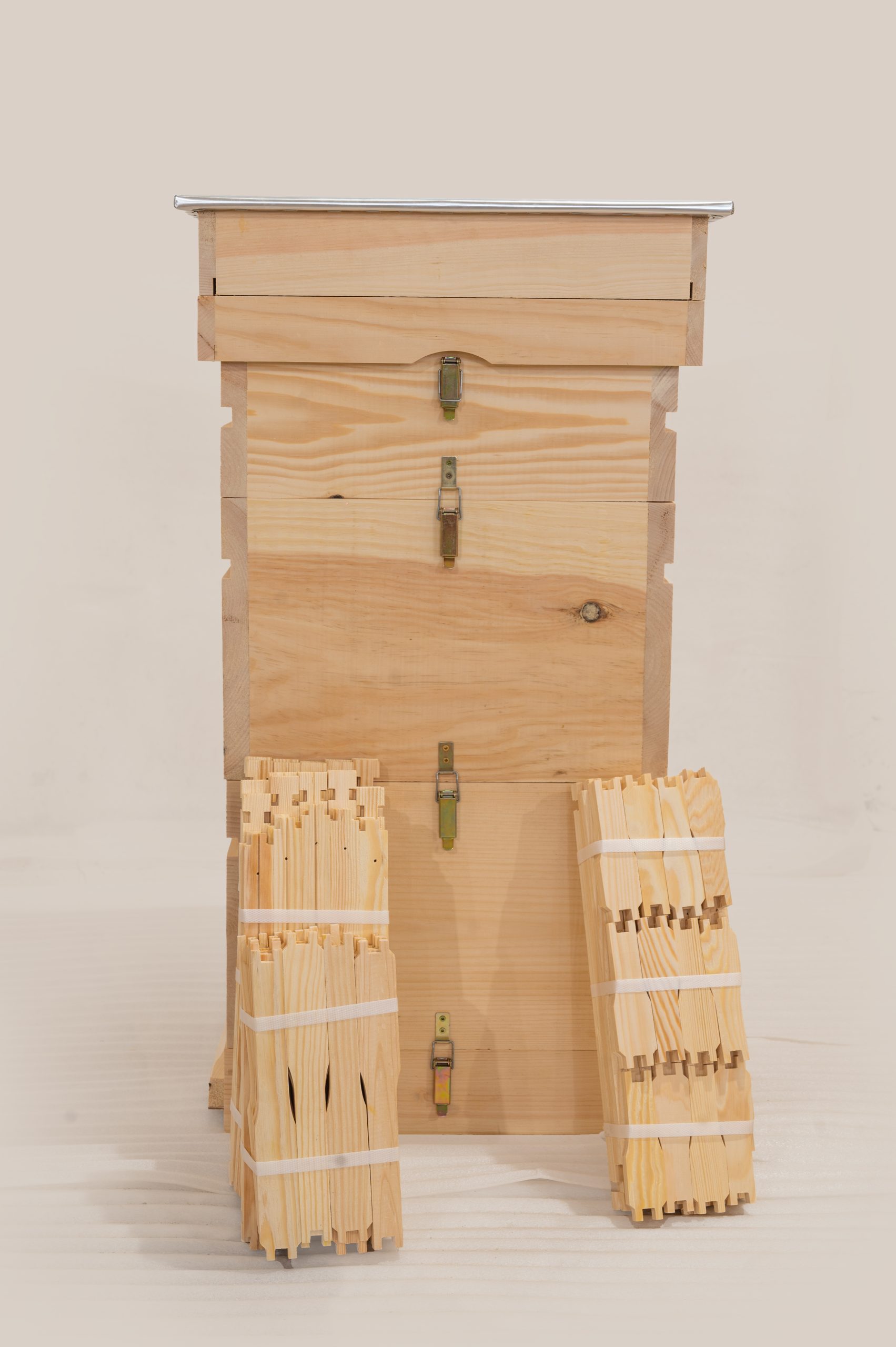 Każdy element ula został sklejony ekologicznym wodoodpornym klejem D3 oraz skręcony nierdzewnymi wkrętami, co gwarantuje wyjątkową wytrzymałość nawet w trudnych warunkach. -